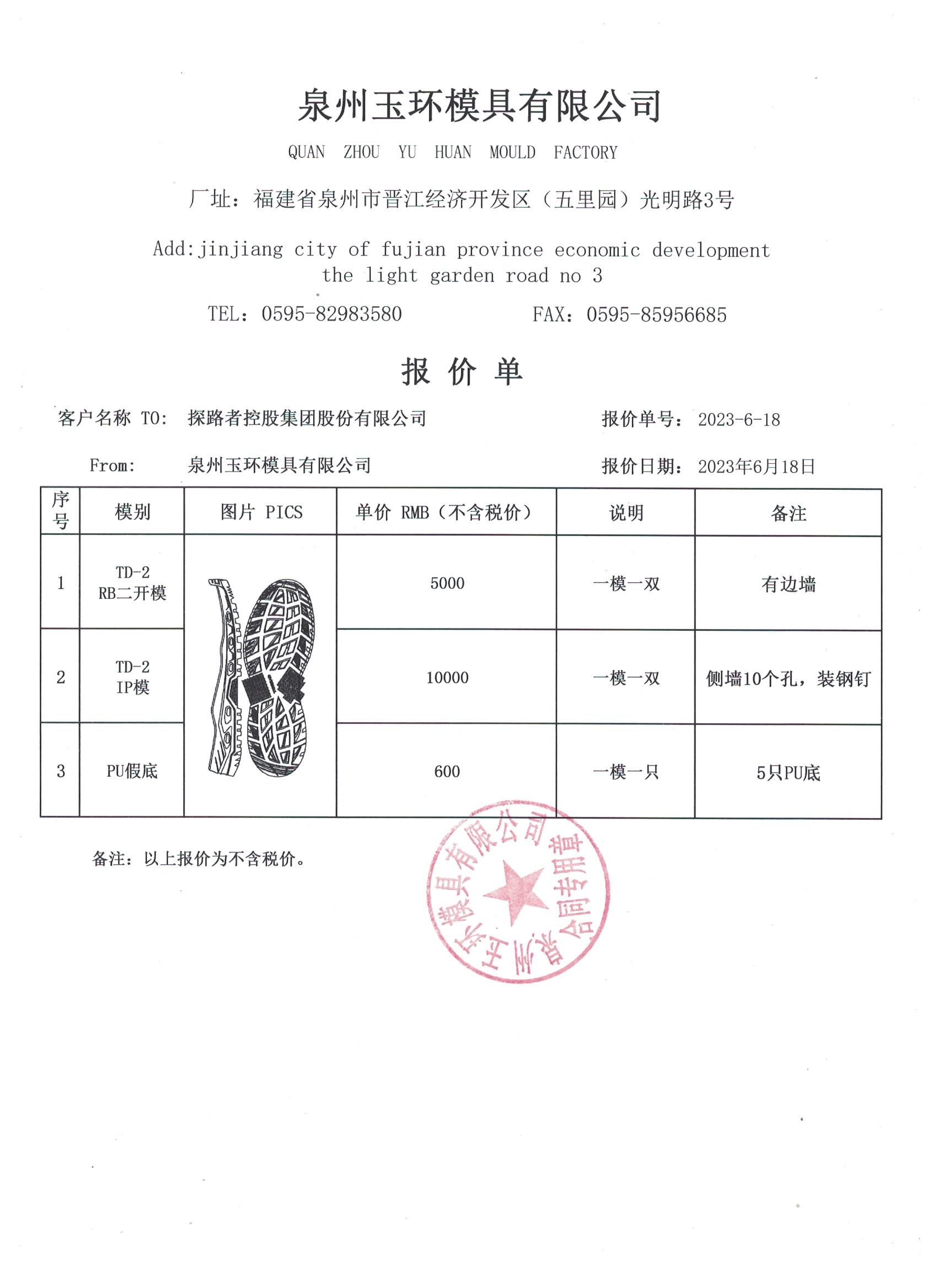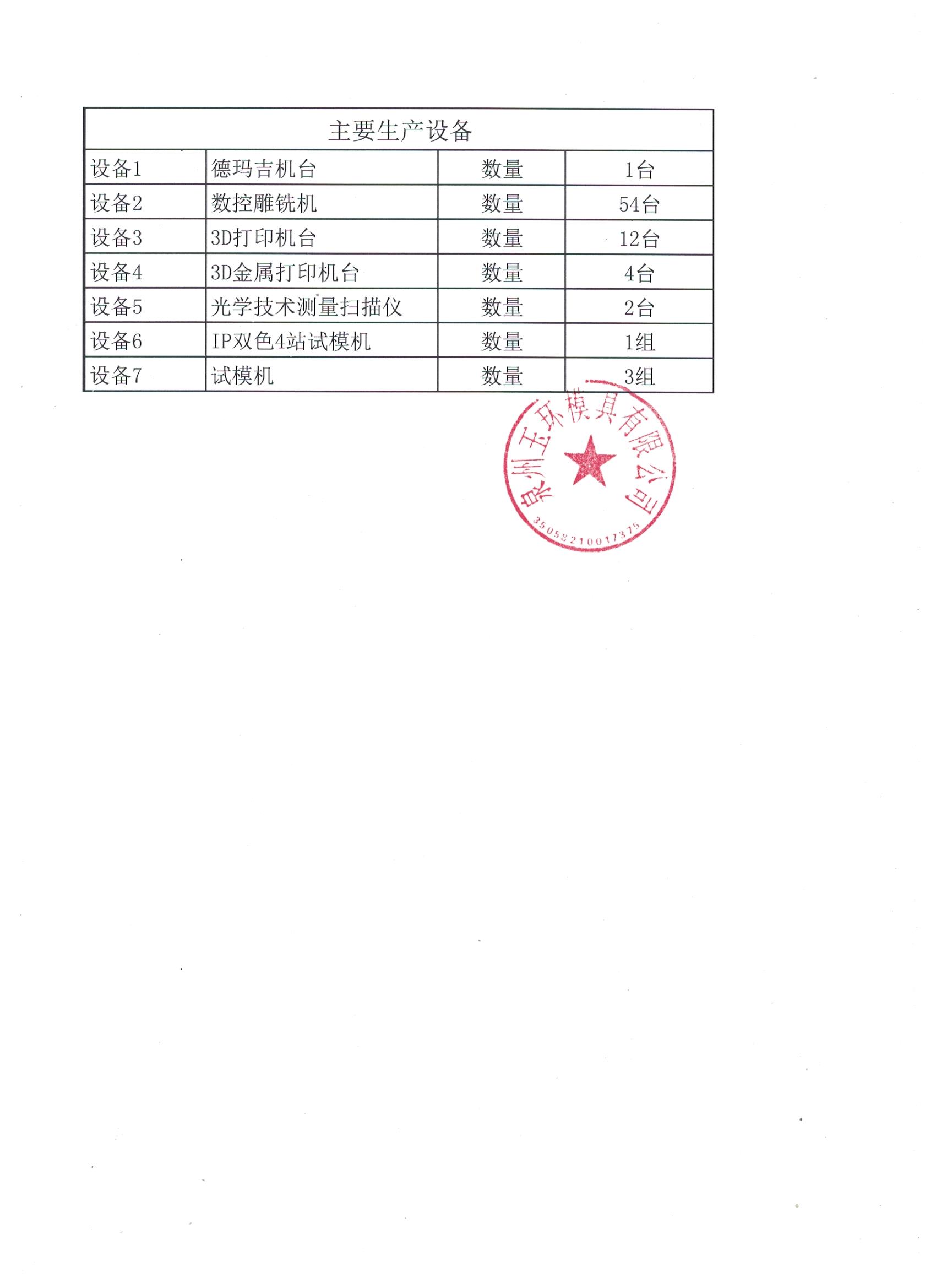 ../ 一般纳税人资格截图_1689836053486.jpg 20-Jul-2023 06:54 1330853 供应商基础信息表_1689837294099.pdf 20-Jul-2023 07:14 1867810 供应商基础信息表_1689842526539.pdf 20-Jul-2023 08:42 1938264 开票资料_1689836113065.jpg 20-Jul-2023 06:55 142889 报价单_1689843907283.jpg 20-Jul-2023 09:05 225952 泉州玉环模具企业信用报告_1689836222166.pdf 20-Jul-2023 06:57 157929 生产设备清单_1689836146306.jpg 20-Jul-2023 06:55 157342
